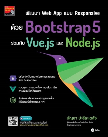 หนังสือ "พัฒนา Web App แบบ Responsive ด้วย Bootstrap5 ร่วมกับ Vue.js และ Node.js" เล่มนี้ ได้รวบรวมสิ่งที่จำเป็นต้องรู้ทั้งหมดสำหรับการพัฒนาเว็บแอปพลิเคชันเอาไว้อย่างครบถ้วน นับตั้งแต่การจัดโครงร่างของเพจด้วย HTML5 การปรับแต่งรูปแบบการแสดงผลให้สวยงามน่าใช้งาน พร้อมทั้งรองรับการแสดงผลบนหน้าจอที่มีขนาดแตกต่างกันด้วย CSS3 และ Bootstrap5 รวมถึงการควบคุมเนื้อหาให้ตรงตามเงื่อนไขด้วย Vue.js ตลอดจนการรับส่งข้อมูลและประมวลผลทางฝั่งเซิร์ฟเวอร์โดยใช้ Node.js พร้อมทั้งไลบรารีที่เกี่ยวข้องอีกหลายอย่าง ซึ่งผู้อ่านสามารถนำไปประยุกต์ใช้ร่วมกันเพื่อพัฒนาเว็บแอปพลิเคชันที่สามารถใช้งานได้จริงตามที่ต้องการ