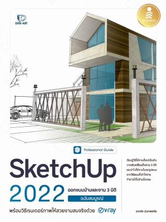 SketchUp 2022 Professional Guide เล่มนี้ มีวิธีสอนที่เน้นการอธิบายด้วยภาพ และวิธีสอนเป็นลำดับไม่ข้ามขั้นตอน เพื่อให้ผู้ใช้งานที่ไม่มีพื้นฐานด้านนี้เลยเข้าใจ และทำตามไปได้ง่าย ไม่สับสน เนื้อหาจะเริ่มตั้งแต่การวาดเส้น 2 มิติ เปลี่ยนให้เป็นโมเดล 3 มิติ กำหนดเวลาของแสงและเงาใส่พื้นผิวและลวดลายการนำไปใช้งานในรูปแบบต่าง ๆ จนถึงเทคนิคขั้นสูงอย่างการสร้างรูปทรงที่ซับซ้อน การใช้โปรแกรมเสริมเพื่อให้ได้ผลงานที่โดดเด่น อาทิ V-Ray สำหรับเรนเดอร์ภาพให้มีแสงสีและพื้นผิวสมจริง การเพิ่มโมเดลที่สร้างลงในแผนที่ของ Google การจัดเรียงผลงานทำพรีเซนเตชัน รวมทั้งฟังก์ชันการใช้งานอื่น ๆ อีกมากมาย ที่จะทำให้ผู้ใช้งานได้เรียนรู้การใช้โปรแกรมตั้งแต่พื้นฐานจนถึงระดับมืออาชีพโดยไม่ตกหล่น